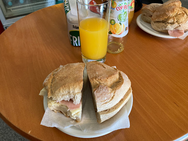 カミーノ上にもカフェがあったのですが、混んでいたのでこちらに入りました。